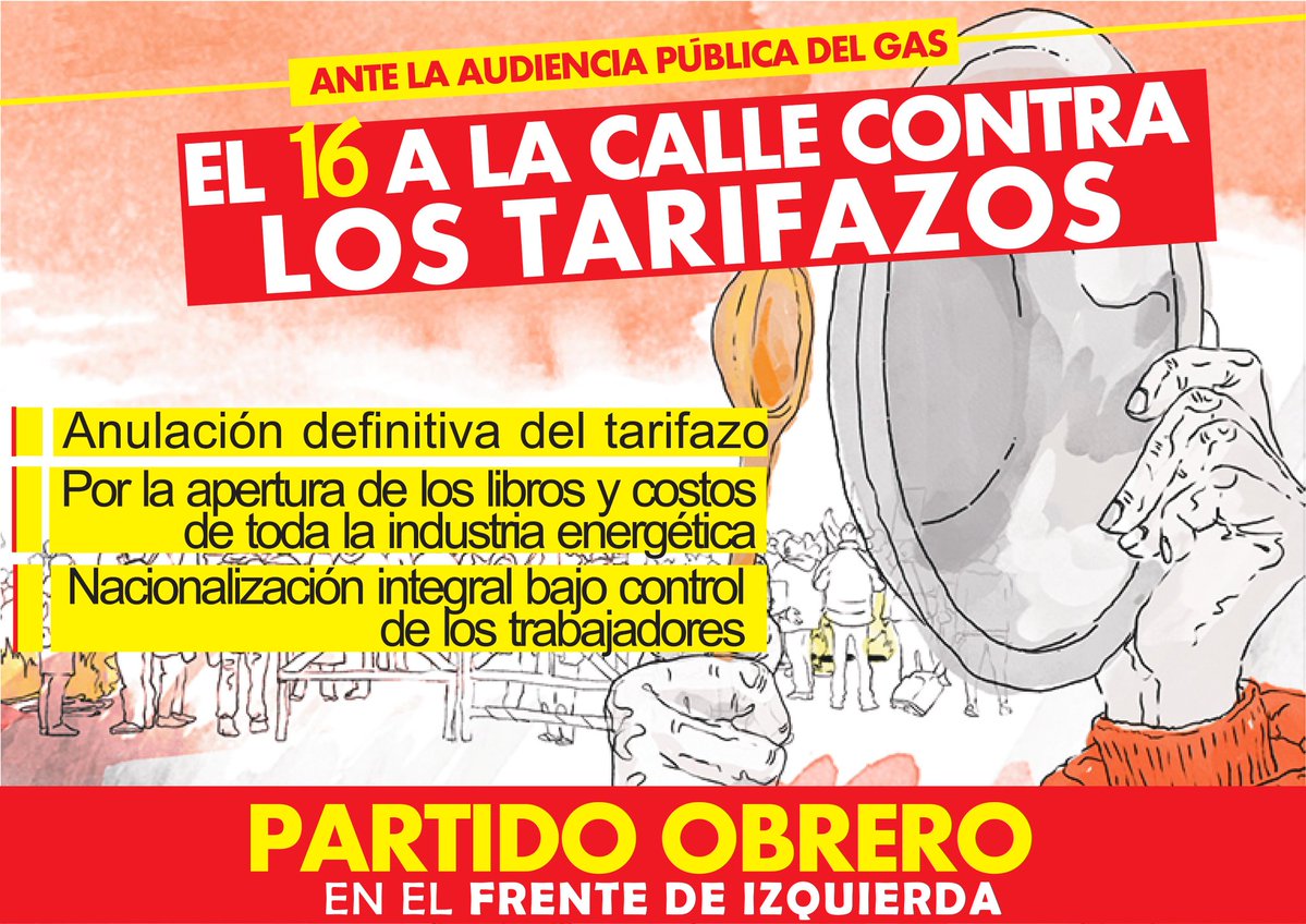 El Partido Obrero de Berazategui llama a toda la población trabajadora a seguir movilizándonos contra los tarifazos.Estaremos presentes en la audiencia pública éste 16/9 con un programa claro: