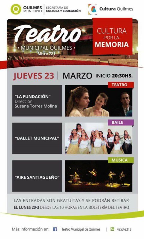 En un nuevo aniversario del golpe de Estado de 1976, el Municipio de Quilmes, a través de la Secretaría de Cultura y Educación, a cargo de Ariel Domene, realizará las jornadas “Cultura por la Memoria” en el Teatro Municipal, ubicado en Mitre 721 de Quilmes centro.