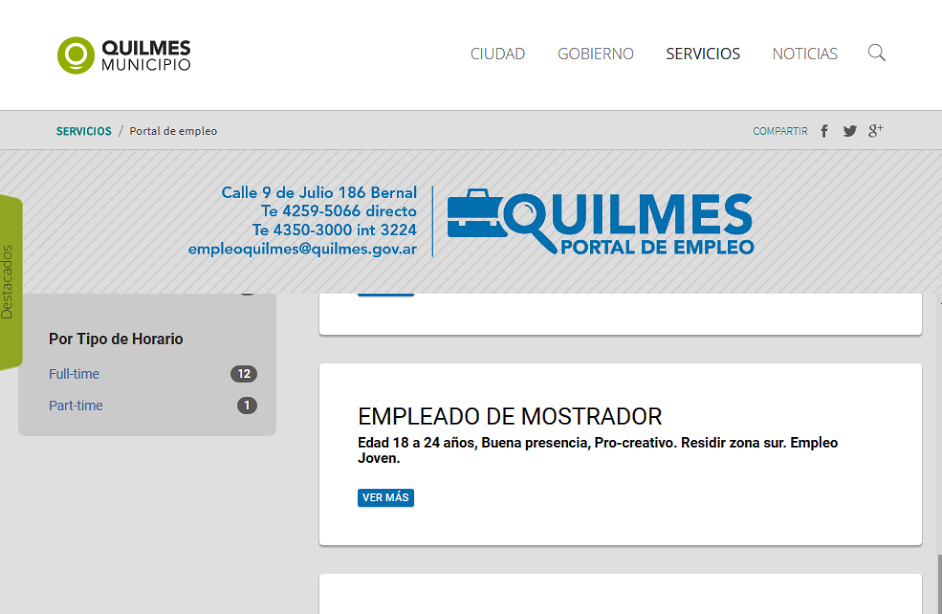 Para mayor información, los interesados pueden comunicarse de lunes a viernes, de 8 a 14, al 4259-5066 o al 4350-3000 (interno 3224); vía mail a empleoquilmes@quilmes.gov.ar; o personalmente a 9 de Julio 186, Bernal