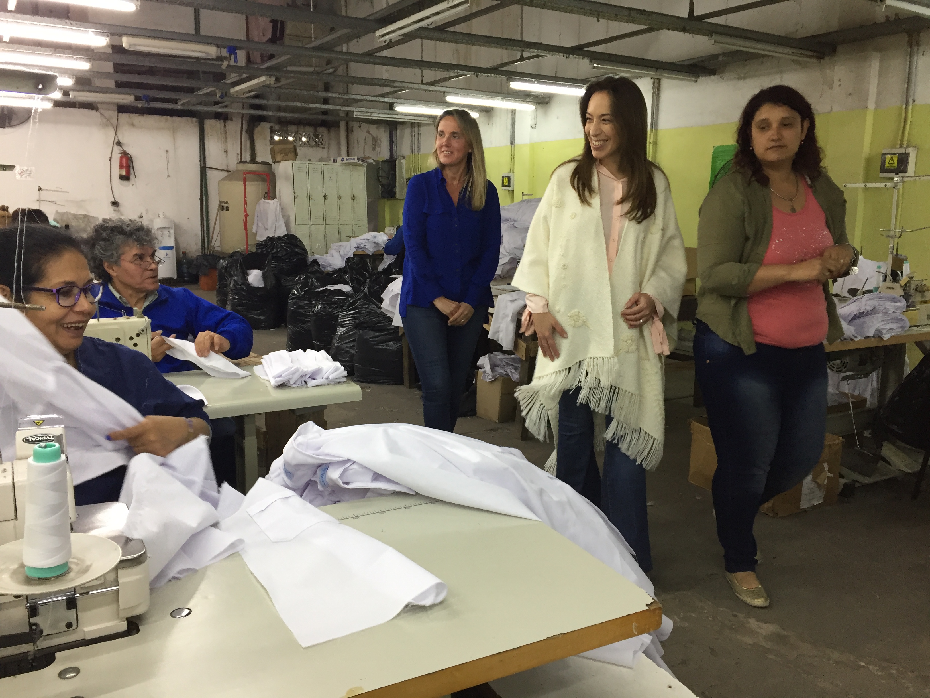 Vidal visitó este lunes la cooperativa textil Nueva Generación, de la localidad de Wilde en Avellaneda. La acompañó la senadora nacional, Gladys González y la recibieron cooperativistas, entre ellas la presidenta de la Cooperativa, Alicia Gutiérrez.