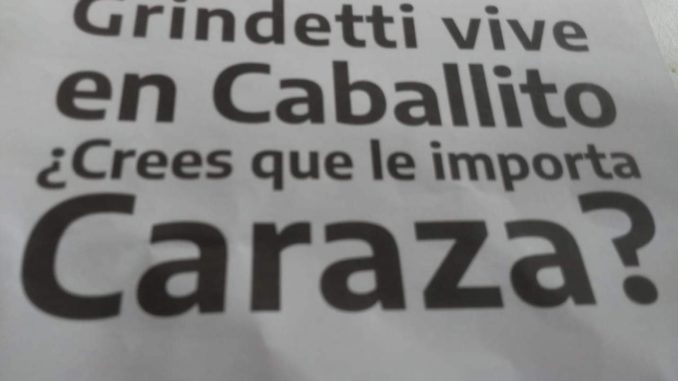 Mientras, en varios barrios aparecieron unos volantes blancos con letras negras que aclaran que «Grindetti vive en Caballito» y se pregunta por qué le importaría el distrito.