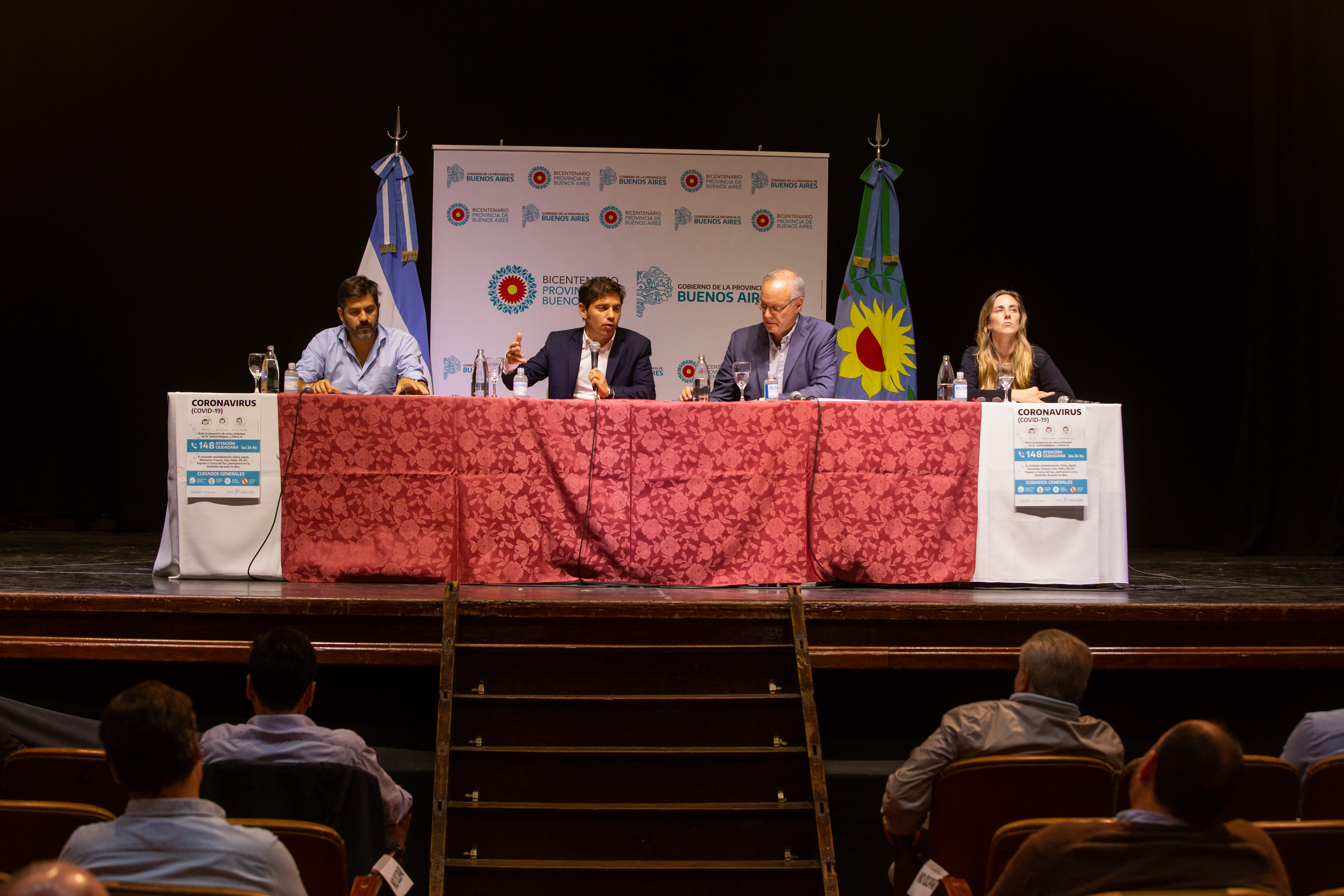 El gobernador de la provincia de Buenos Aires, Axel Kicillof, se reunió esta tarde, en el Teatro Metro de La Plata, con los intendentes bonaerenses para realizar un diagnóstico de la emergencia sanitaria y coordinar las acciones necesarias ante la pandemia de COVID-19.