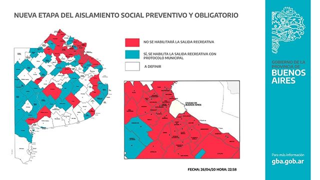 Asimismo, el Ejecutivo bonarense comenzó a difundir un mapa de los distritos habilitados y a los cuales la medida no rige para clarificar la situación en la población.