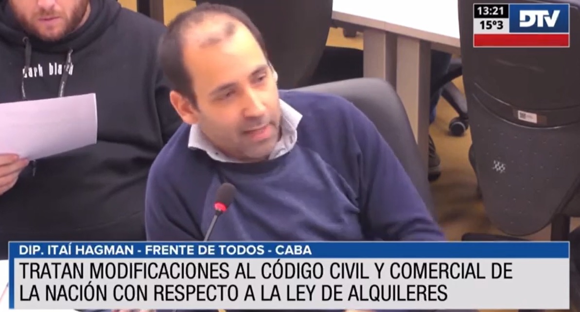 Itaí Hagman (FdT) aseveró que “la discusión de dos contra tres años al único actor interesado de que los contratos sean más cortos son las inmobiliarias, no son los propietarios y muchos menos los inquilinos”. Con respecto a la norma del Senado remarcó que “es una solución superadora”, la cual aseguró que busca “mejorar el actual mecanismo de indexación al hacerlo por el valor más bajo entre inflación y salario, siendo mucho más razonable”.