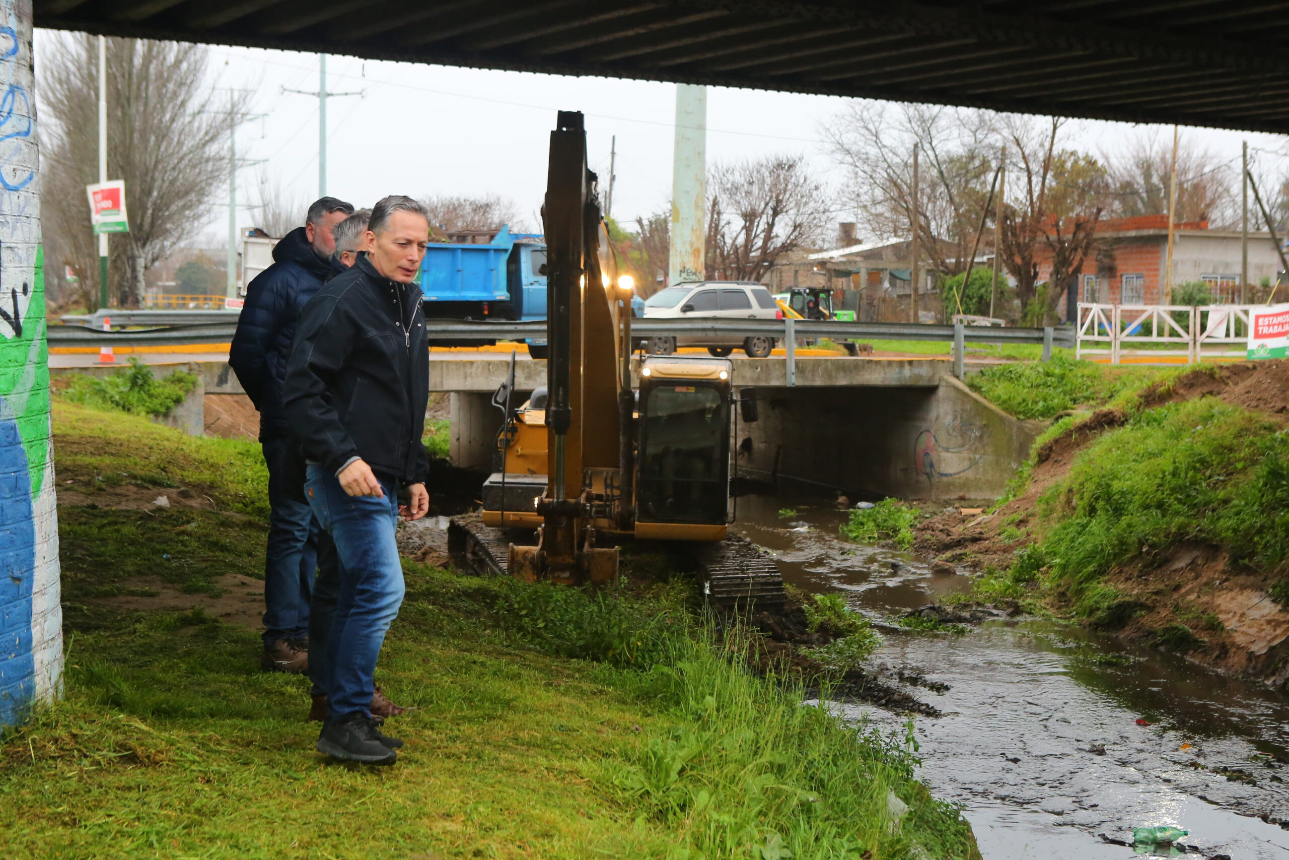 Actualmente, las cuadrillas llevan adelante las tareas en el tramo del arroyo que se extiende entre las calles Máximo Paz y Luis Beltrán. Allí, mediante maquinarias (retroexcavadoras sobre orugas, retropala, pala cargadora, entre otras) y camiones se realiza la limpieza y el ensanchamiento de las márgenes del afluente, el dragado y la profundización de su cauce.