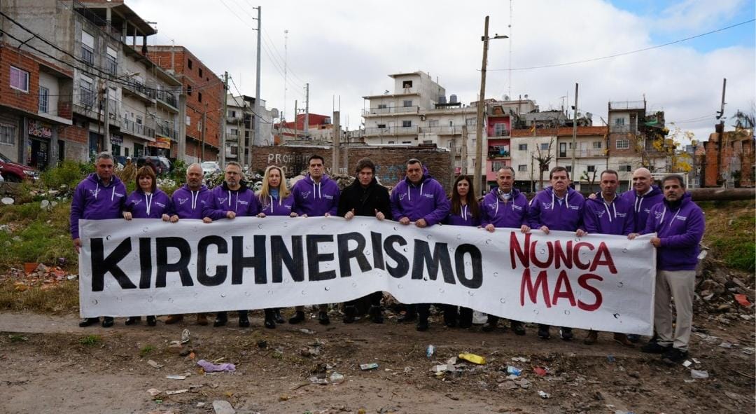 El presidente Javier Milei marcó el inicio de la campaña de La Libertad Avanza en la provincia de Buenos Aires con una foto en Villa Celina, La Matanza, con sus principales candidatos para las elecciones bonaerenses del 7 de septiembre, en la que sostienen una pancarta que dice “Kirchnerismo Nunca Más”.