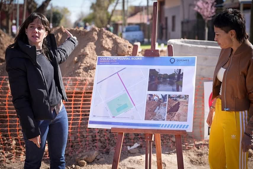La intendenta de Quilmes, Mayra Mendoza, junto a la secretaria de Desarrollo Urbano y Obra Pública, y primera candidata concejala por Fuerza Patria Quilmes, Ceci Soler, supervisaron este lunes el avance de la obra hidráulica de construcción y readecuación de sumideros, ubicados en el barrio El Jalón, en la zona del polo educativo de Ezpeleta Oeste, sobre la calle Ricardo Rojas entre Cuba y Costa Rica.