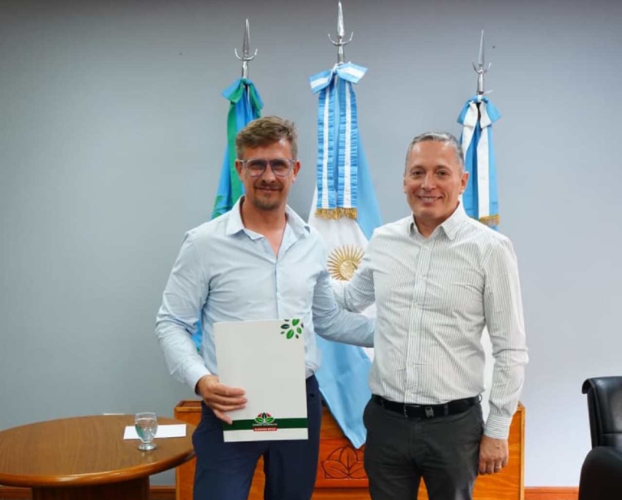 El jefe comunal estuvo acompañado por el presidente de Livinginabox, Omar Jakimczuk; el gerente General de la empresa Gurruchaga, Daniel Gurruchaga, y el asesor externo, Luis Galardi; y la directora de Desarrollo Productivo local, Julia Galizzi.
